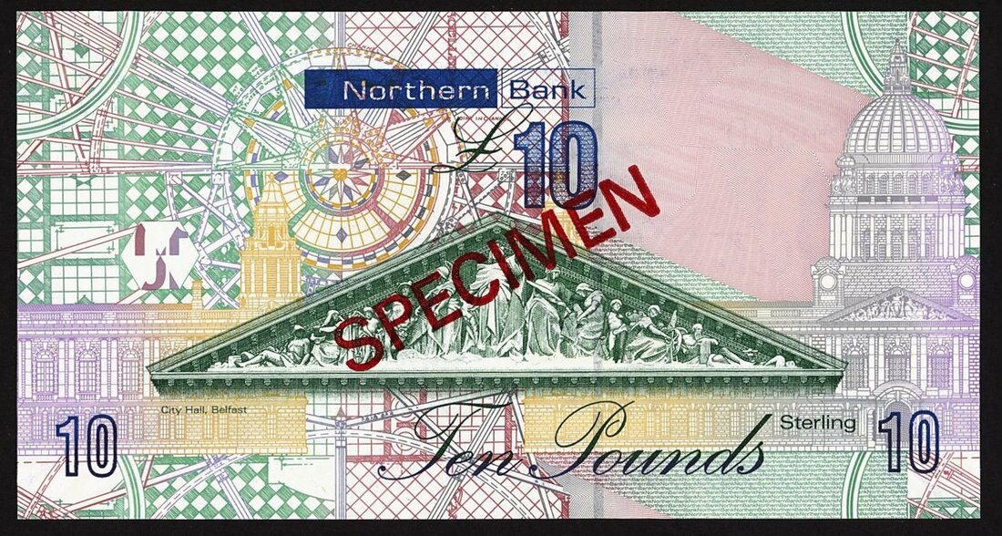 Northern Bank, Northern Ireland, specimen £10, 9 November 2008, serial number GG0000000, (Pick 210as), red SPECIMEN overprints, uncirculated