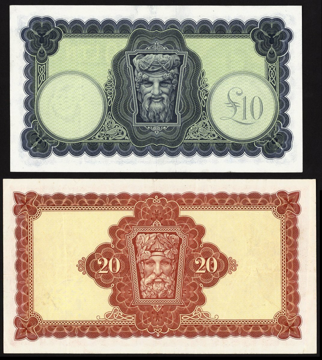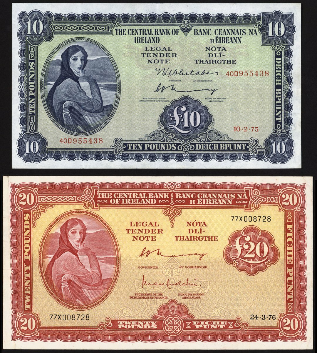 (x) Central Bank of Ireland, £10 and £20, 1975-76, (PMI LTN62a, 65), about extremely fine (2 notes)