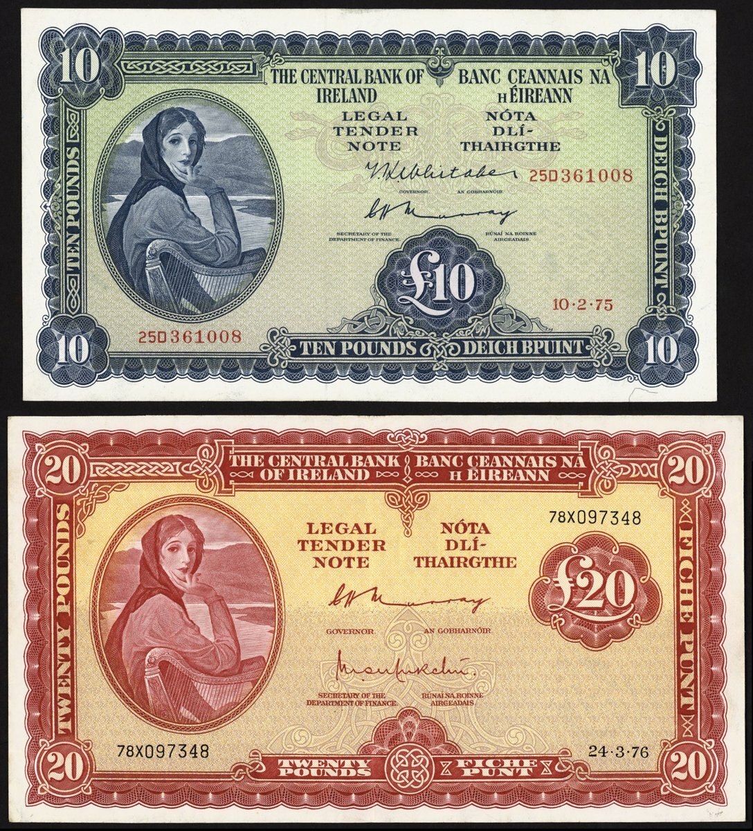 (x) Central Bank of Ireland, £10 and £20, 1975-76, (PMI LTN62a, 65), good very fine (2 notes)