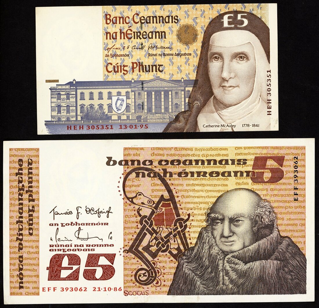 (x) Central Bank of Ireland, £5, 1986, prefix EFF, also a £5 1995, prefix HEH,