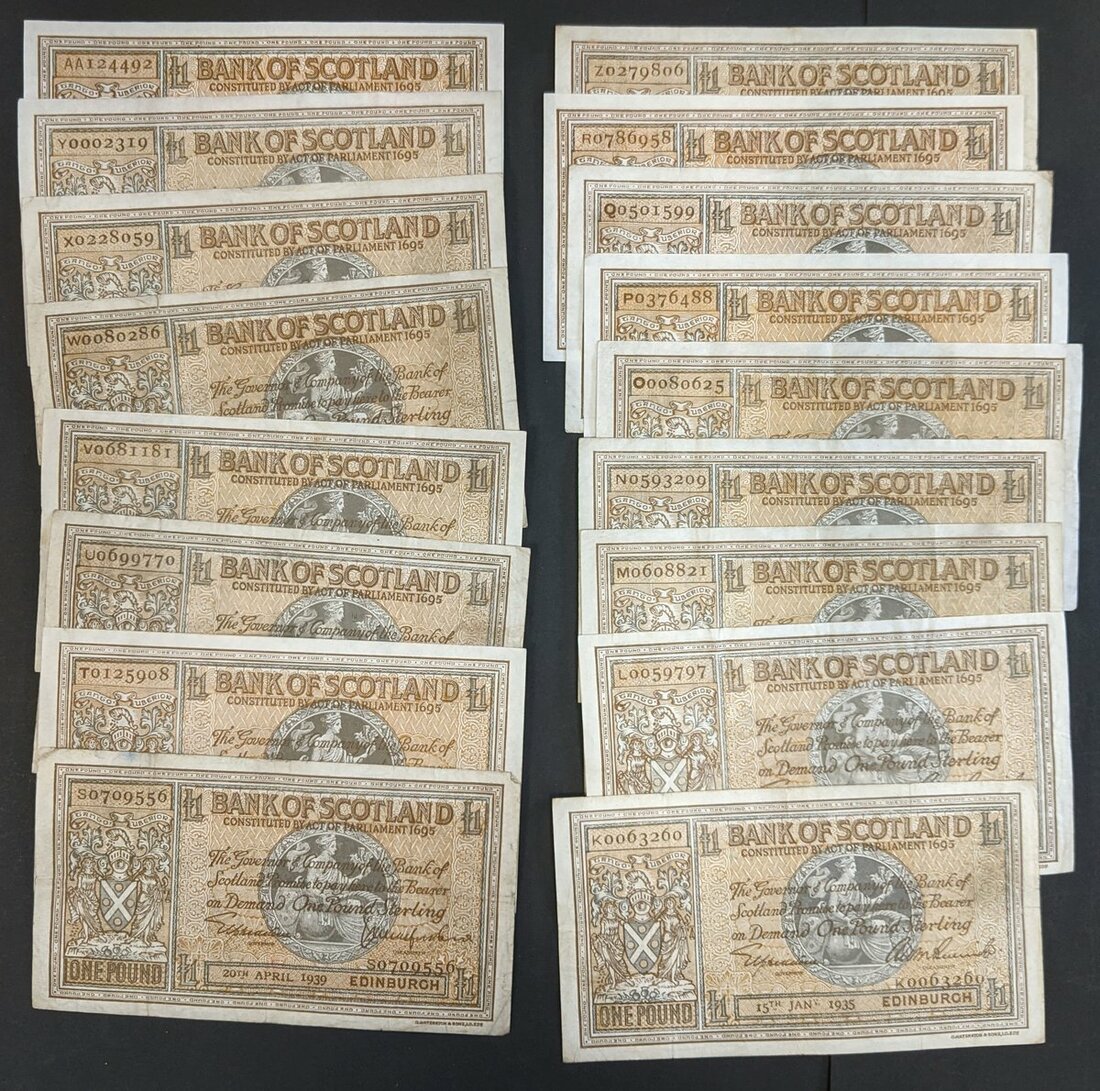 Bank of Scotland, a complete date run of the 1935-43 issues, £1 (17), (PMS BA95a, b, c, d), balance very fine (17 notes)