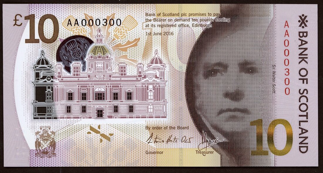 (x) Bank of Scotland, polymer £10, 2016, serial number AA 000300, (Pick 131), uncirculated