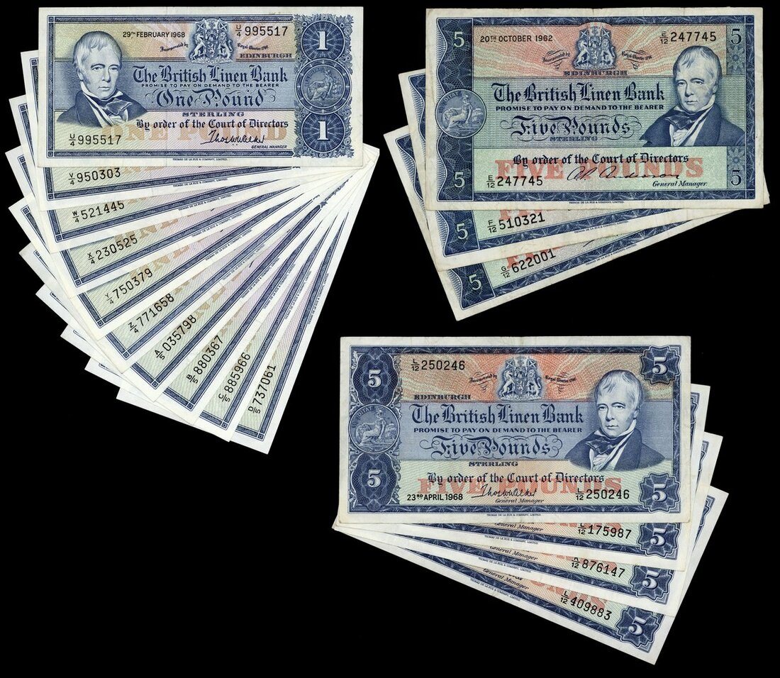 British Linen Bank, a nearly complete dates and prefixes of the 1962-70 issue, including £1 (10), £5 (7),