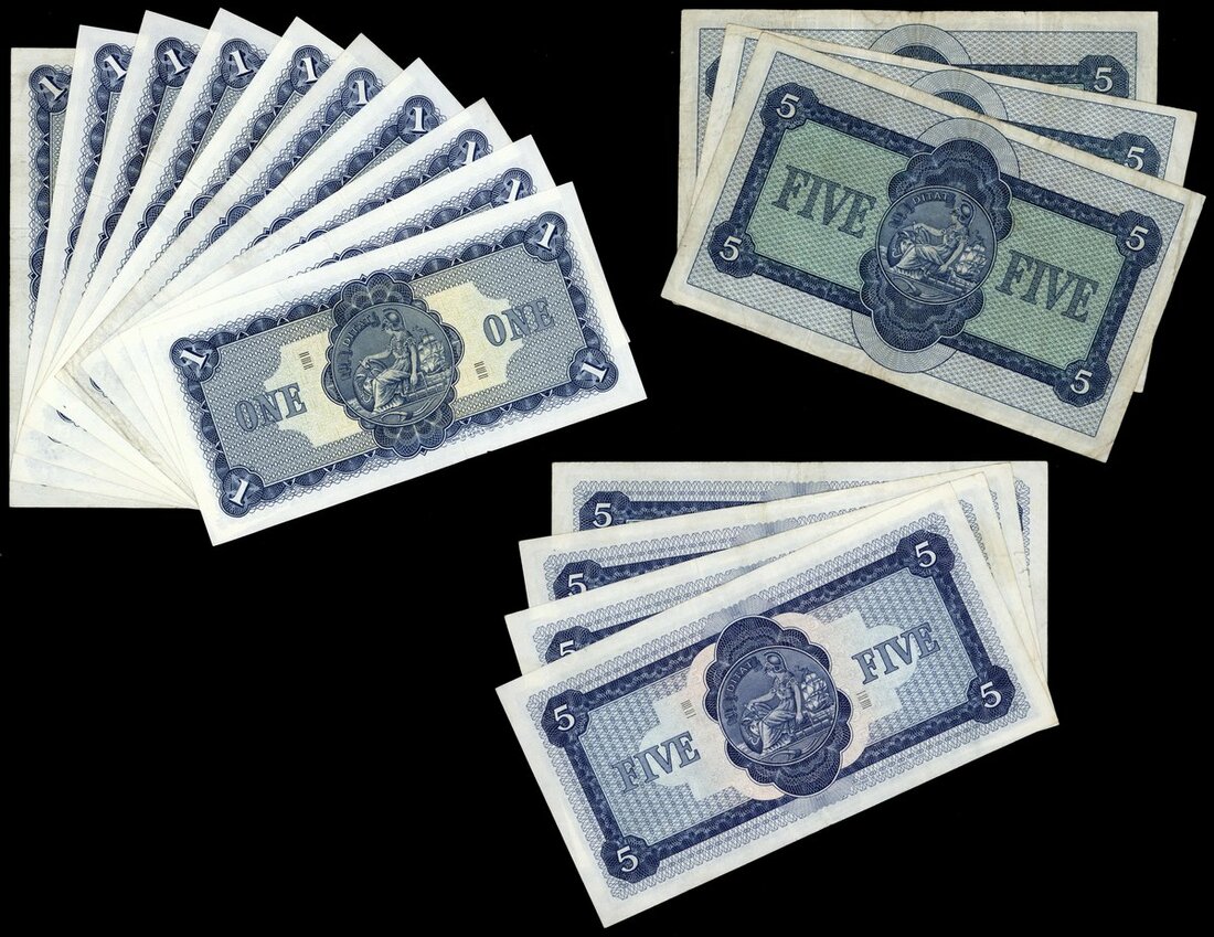 (PMS BL75, BL76a, b, BL77), £1 VF with some EF examples, £5 generally very fine (17 notes)