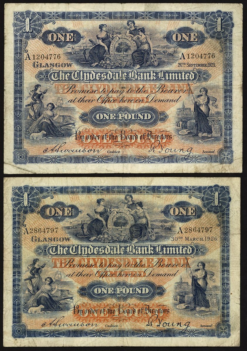 Clydesdale Bank Limited, £1 (2), 1923, 1926, (PMS CL18b), fine (2 notes)