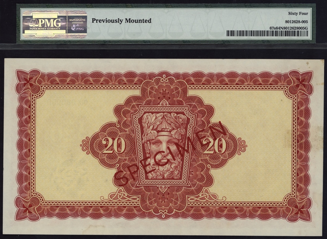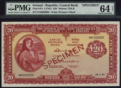 (x) The Central Bank of Ireland, £20, ND (1961-76), serial number 01X 000000, (Pick 67s), in PMG holder 64 NET Choice Uncirculated (1 finer)