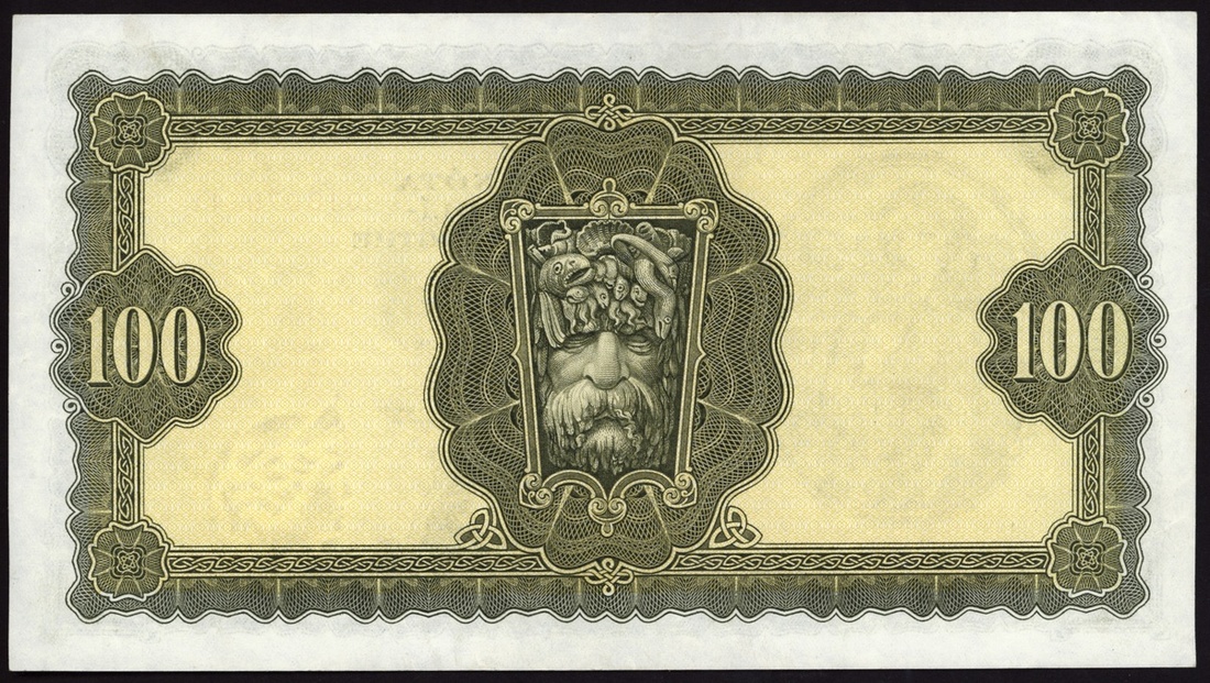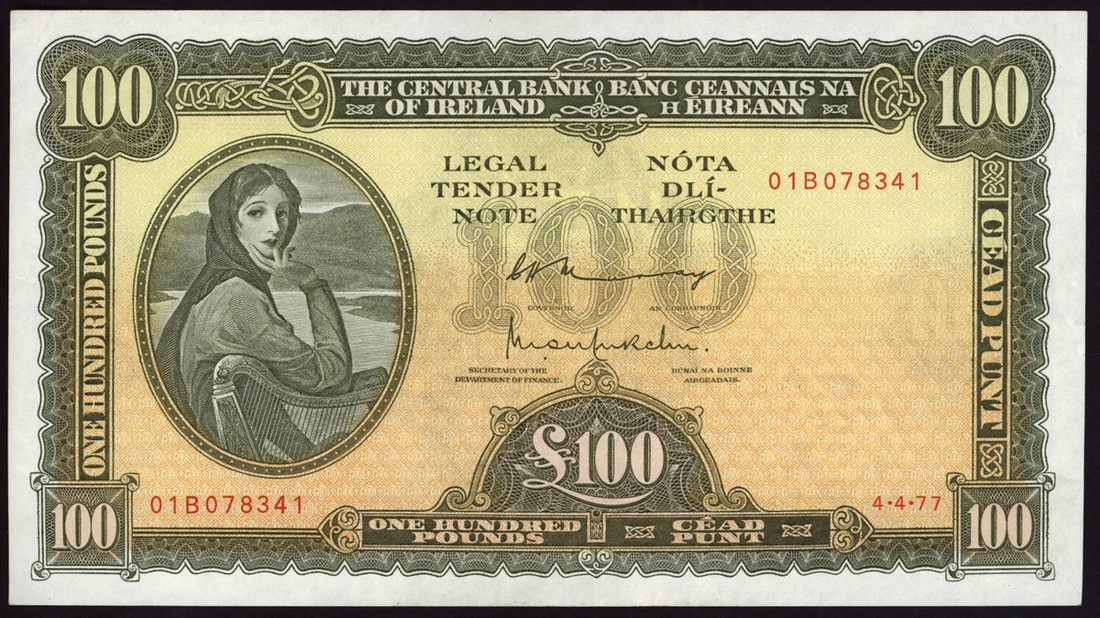 Central Bank of Ireland, £100, 4 April 1977, serial number 01B078341, (PMI LTN67, Pick 69c), last year of issue for the 'Lady Lavery' £100, extremely fine