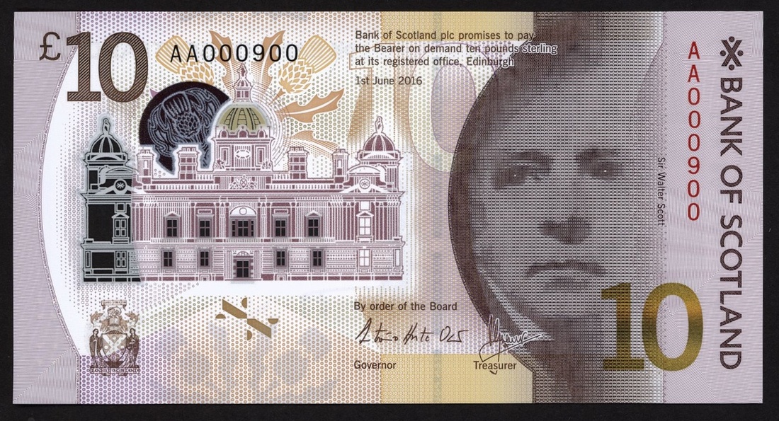 (x) Bank of Scotland, polymer £10, 2016, serial number AA000900, (Pick 131), uncirculated, ex-charity auction