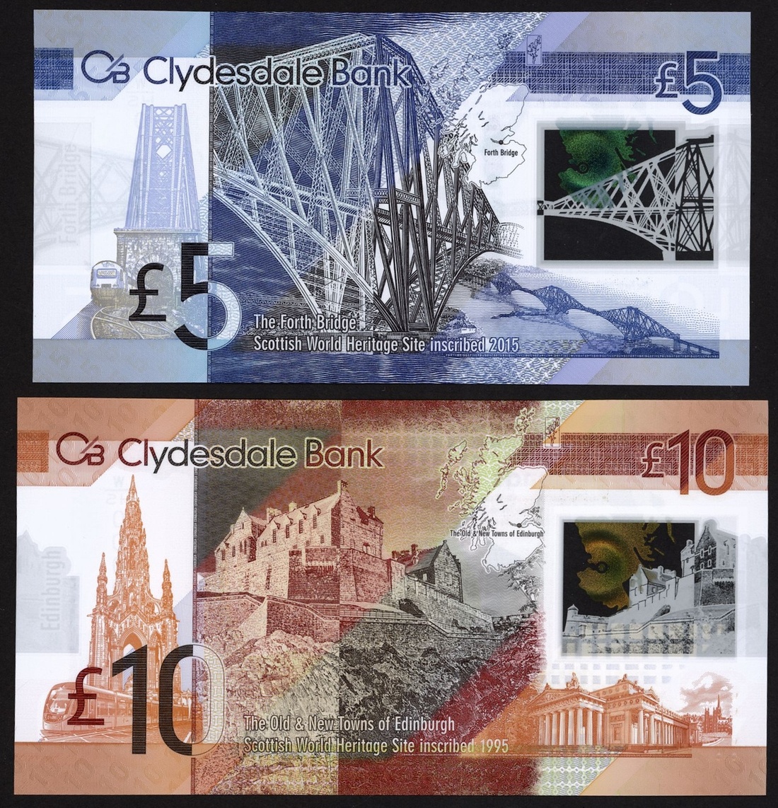(x) Clydesdale Bank, £5, £10, 2016, matching serial number W/HS 000049, (PMS CL70a, 71a), first prefix low number pair, uncirculated (2 notes)