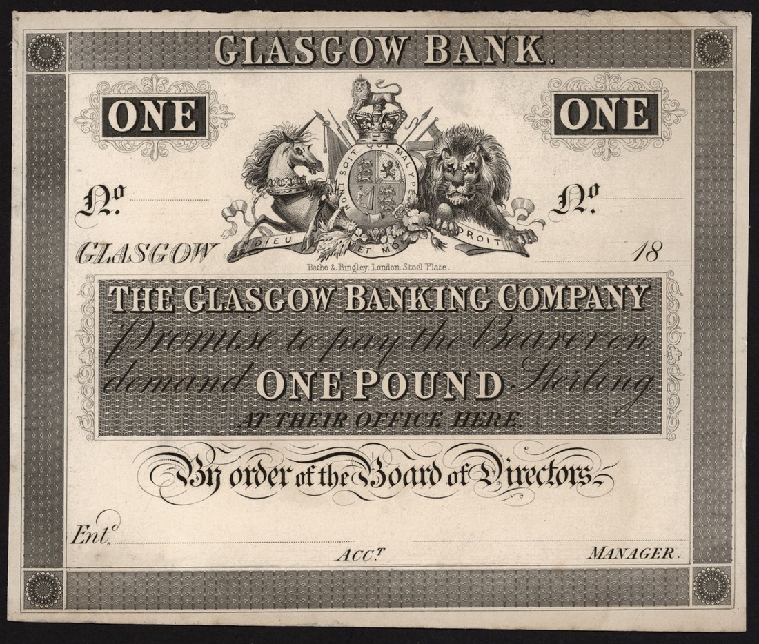 Glasgow Banking Company, Scotland, proof £1, 18- (1843-44), no serial numbers, uniface,
