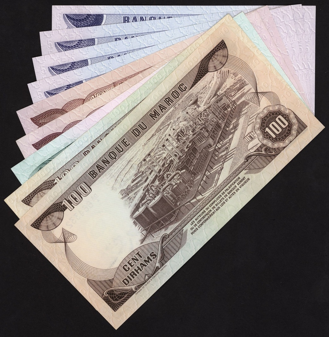 Banque du Maroc, a group of the 1970-85 issues, including replacement 5 dirhams (4) 1970, 10 dirhams (2) 1970, 1985, 50 dirhams 1970, 100 dirhams (2) 1970,