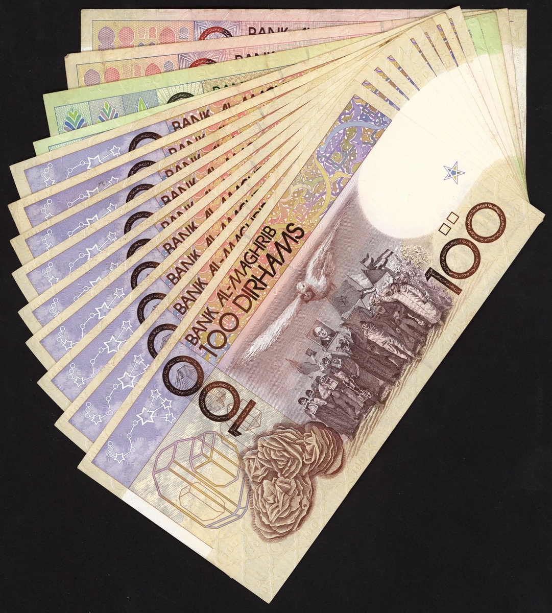 Bank Al-Maghrib, a group of the 1987 issues, including 10 dirhams (2), 50 dirhams (2), 100 dirhams (9) includes a consecutive run of 7,