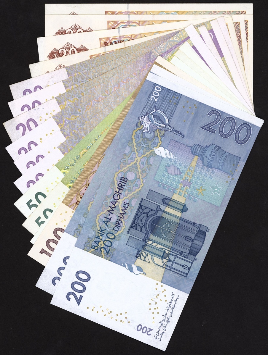 Bank Al-Maghrib, 20 dirhams (4) 1996, includes a serial number 200000, also a group of 2002-05 issues, 20 dirhams (6), 50 dirhams (3), 100 dirhams (1), 200 dirhams (2),