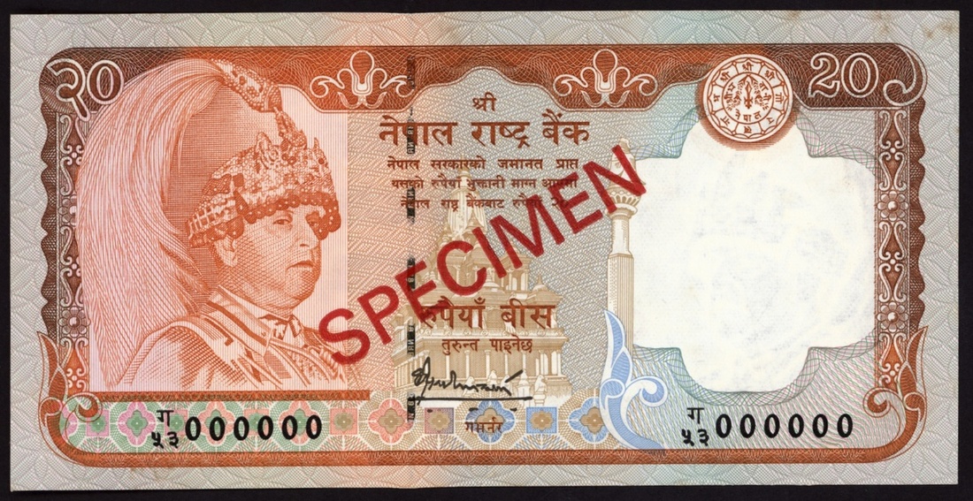 (x) Nepal Rastra Bank, specimen 20 rupees, ND (2004), (BNB B262s), minor stain, about uncirculated