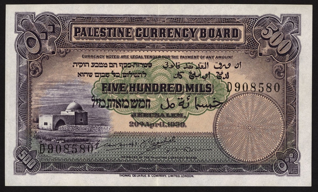 Palestine Currency Board, 500 mils, 20 April 1939, serial number D908580, (Pick 6c, TBB B101c, Dabbah p.161), good extremely fine to about uncirculated