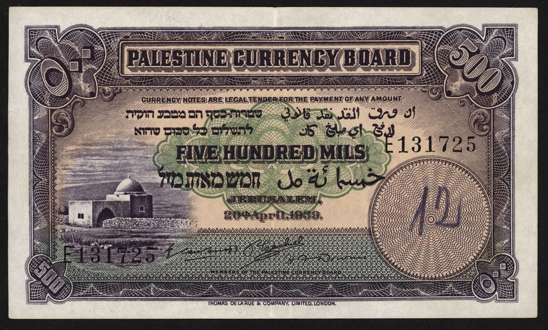 Palestine Currency Board, 500 mils, 20 April 1939, serial number E131725, (Pick 6c, TBB B101c, Dabbah p.161), good extremely fine, annotation