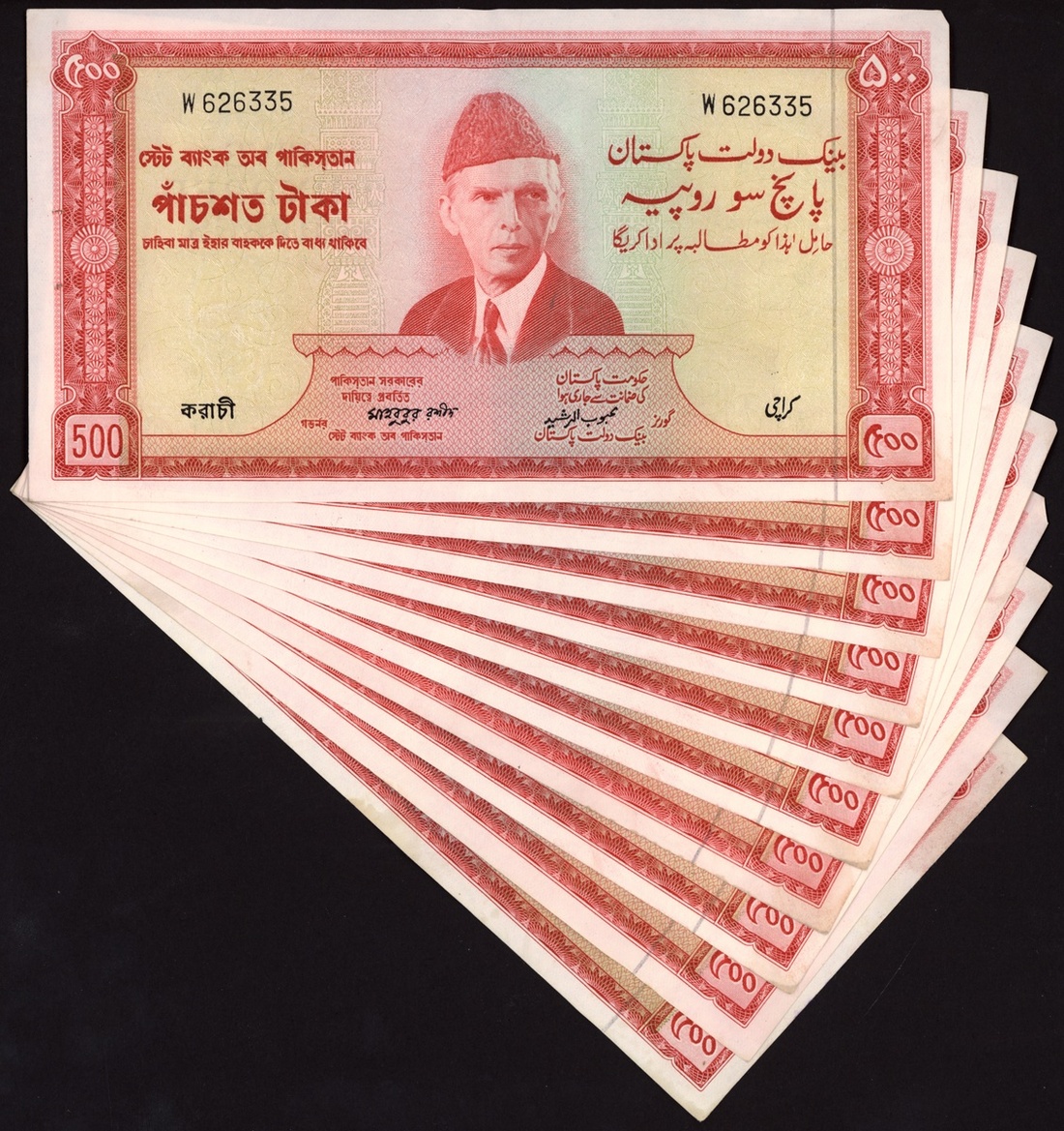 State Bank of Pakistan, 500 rupees, (Pick 19), some consecutive (10 notes)