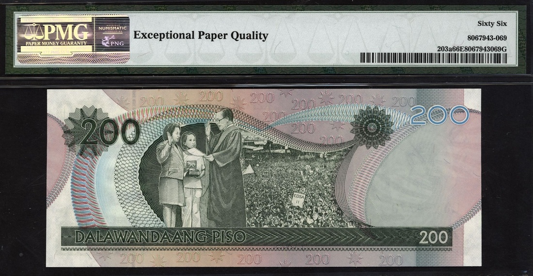 (x) Central Bank of Philippines, 200 piso, 2009, serial number GY294780, (Pick 203a), in PMG holder 66 EPQ Gem Uncirculated