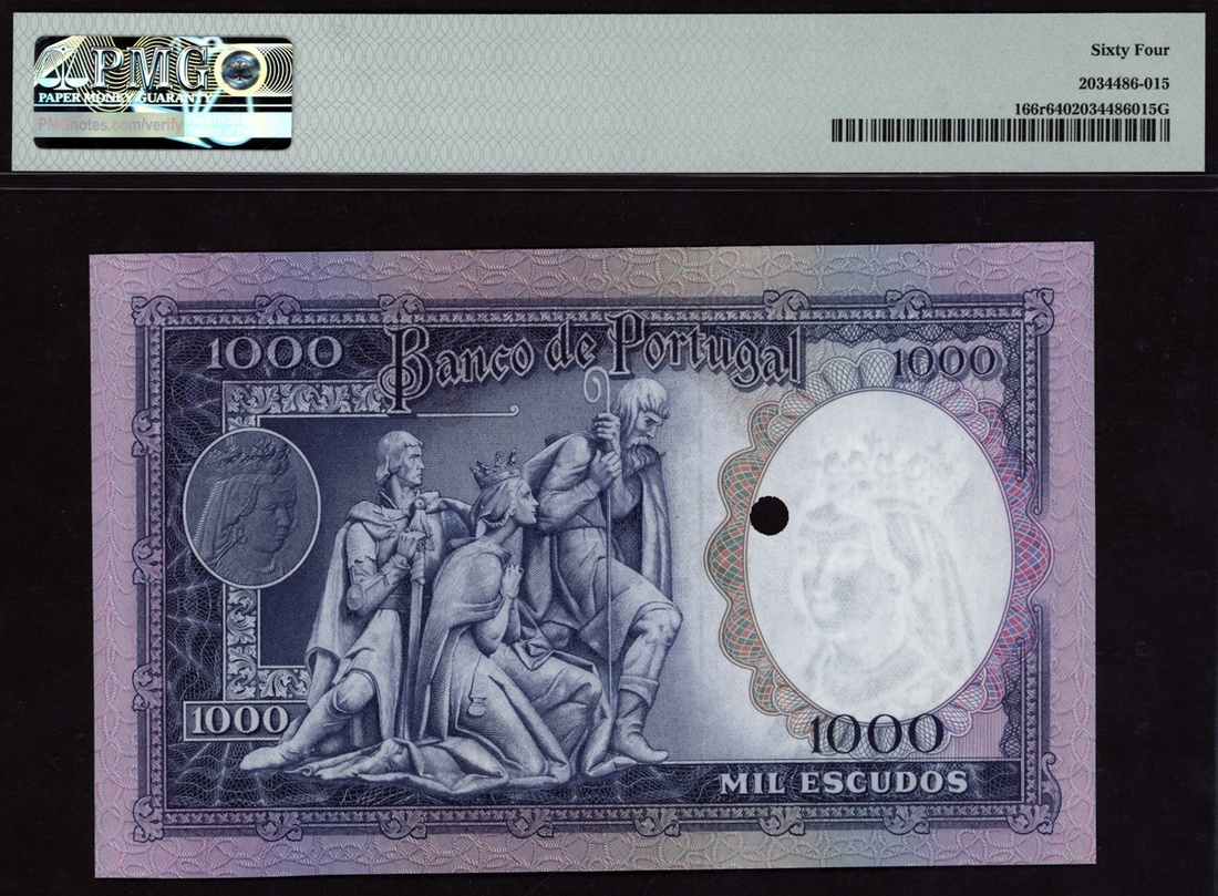 (x) Banco de Portugal, remainder 1000 escudos, ND (1961), (Pick 166r), in PMG holder 64 Choice Uncirculated