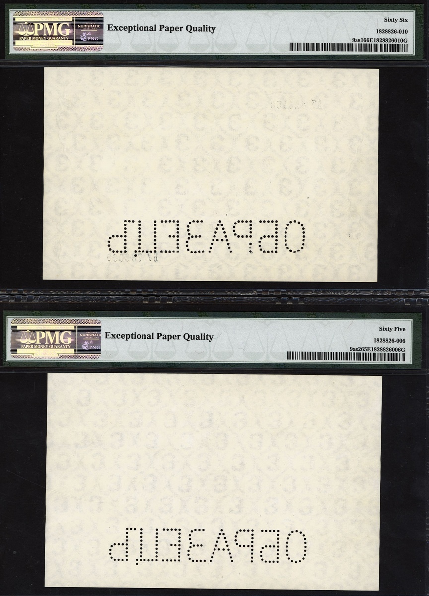 (Pick 9as1, 9as2, RPM 1.15.104O), perforated specimen (obrazets) in Cyrillic, in PMG holders 66EPQ, 65EPQ Gem Uncirculated, beautiful and rare (2 notes)