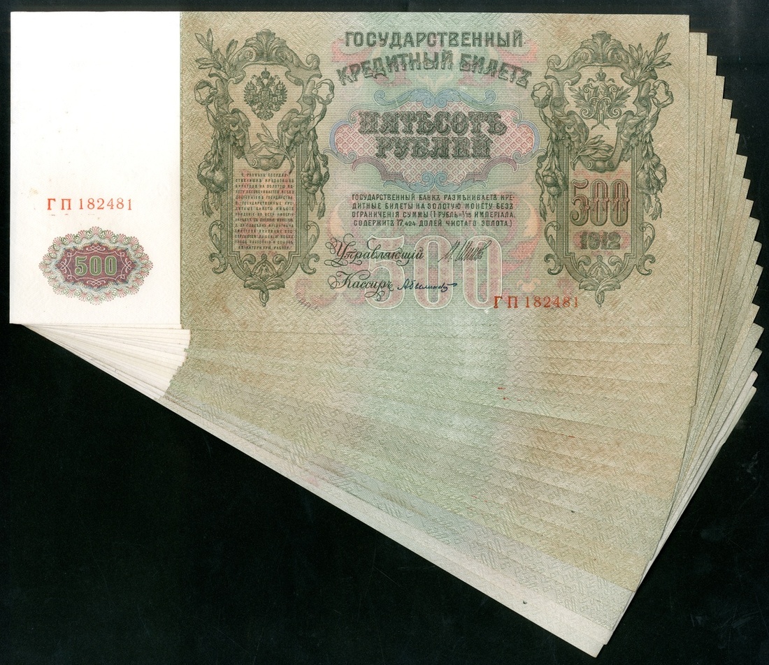 State Credit Notes, 500 rubles, 1912, (Pick 14b), good very fine or better, interesting fact, in 1912 approximate average salary per month in Moscow was 40 rubbles (20 notes)