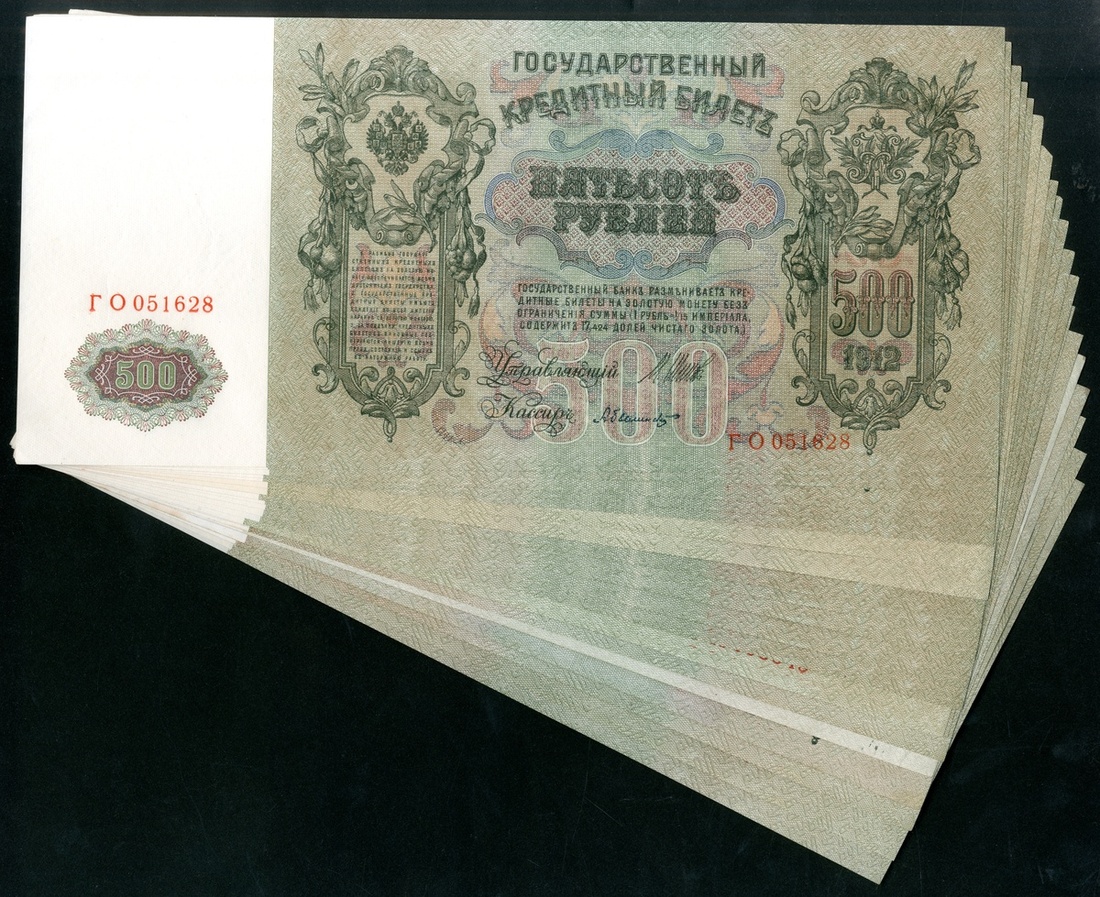 State Credit Notes, 500 rubles, 1912, (Pick 14b), good very fine or better, interesting fact, in 1912 approximate average salary per month in Moscow was 40 rubbles (20 notes)