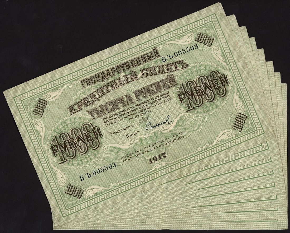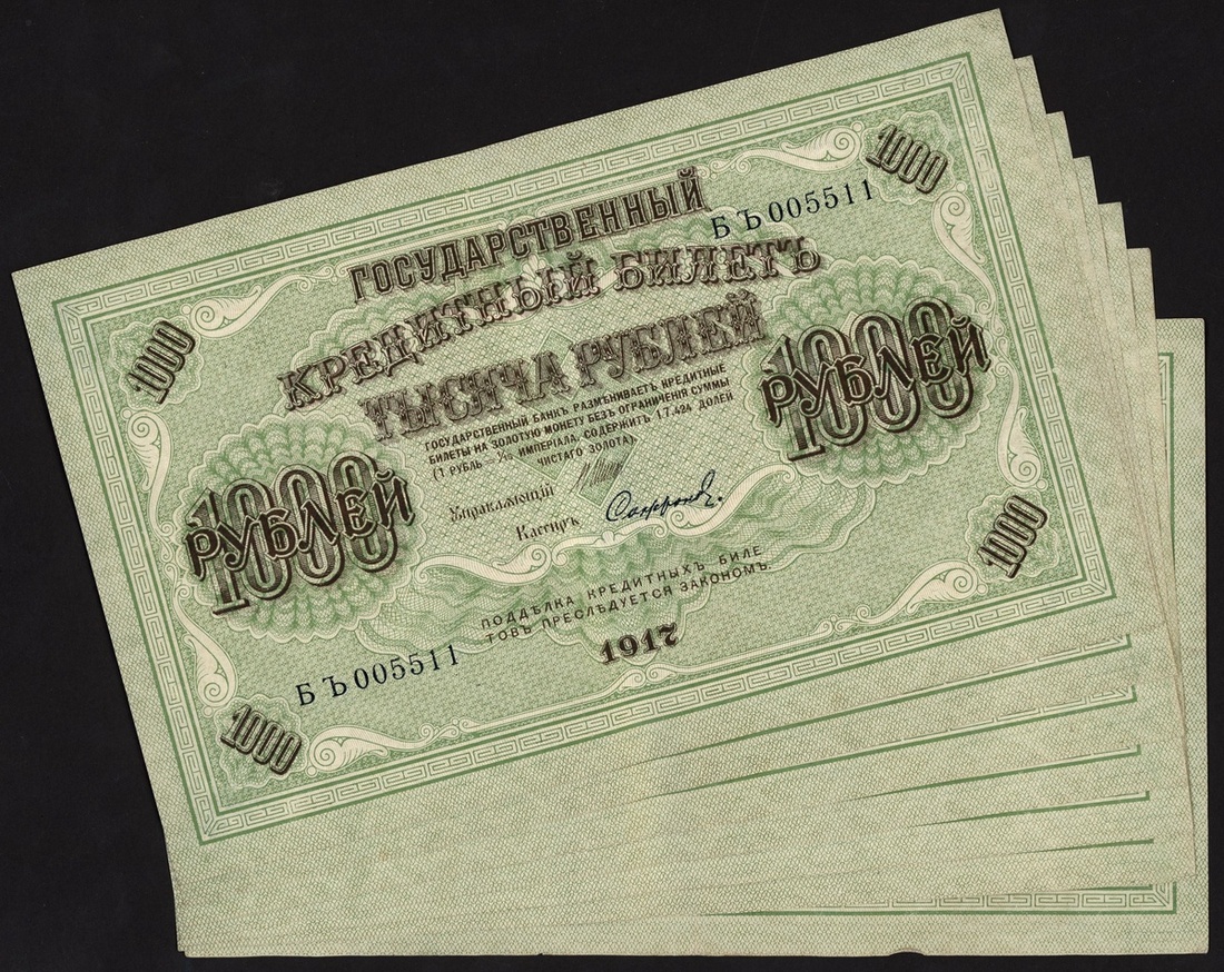 Government Credit Notes, Russia, consecutive 1000 rubles (14), 1917, also a 1000 rubles 1917,