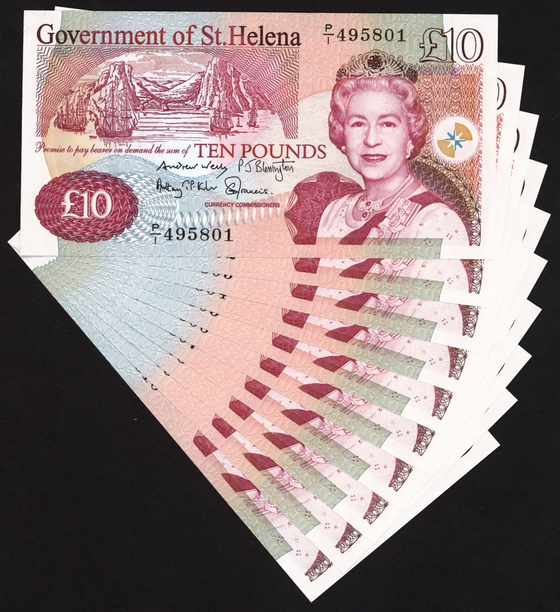 Government of St. Helena, consecutive £10, 2004, prefix P/1, (Pick 12), uncirculated (10 notes)