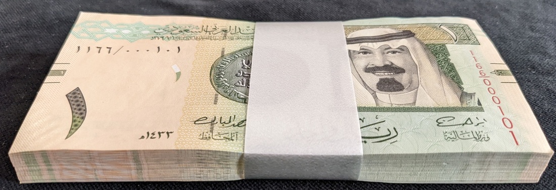 (x) Saudi Arabia Monetary Agency, a bundle of 1 riyal (100), serial numbers 1166 000101-000200, (Pick 31), uncirculated as issued (100 notes)