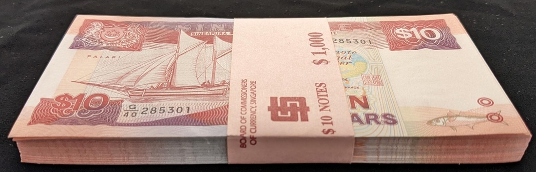 Singapore, consecutive $10, 1988, serial number G/40 285301-400, (Pick 20), uncirculated (100 notes)