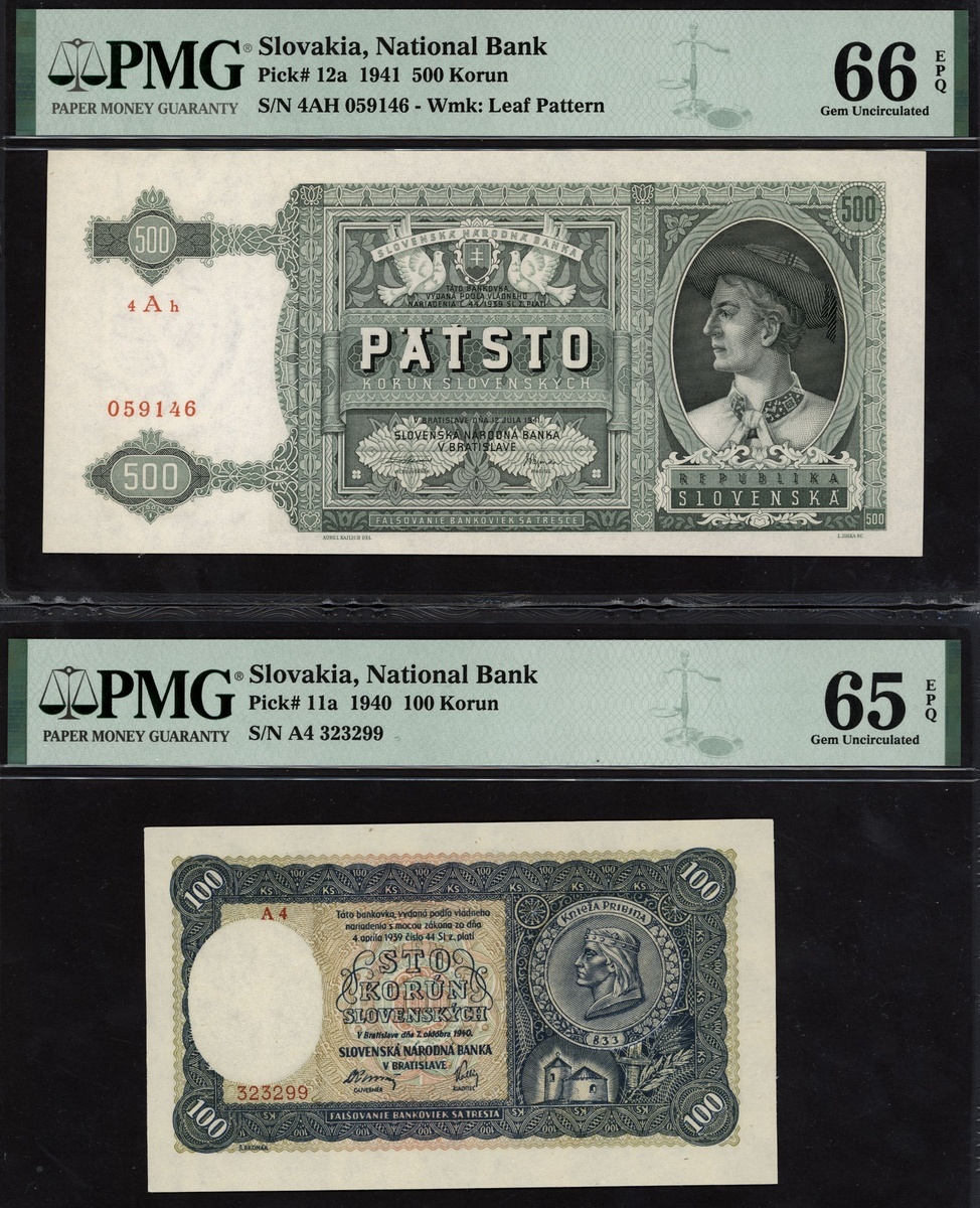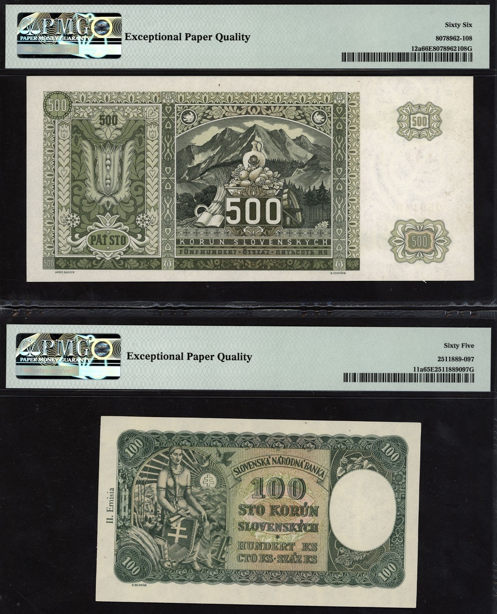 (x) National Bank, Slovakia, 100 korun, 1940, also 500 korun, 1941
