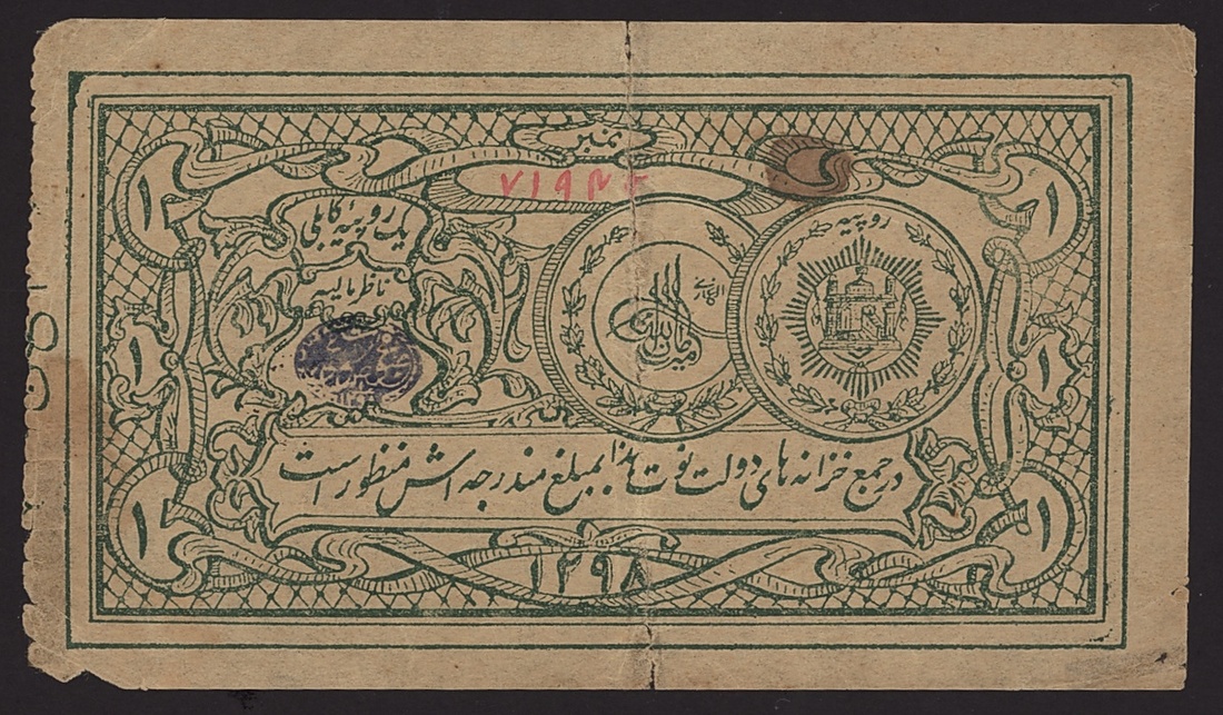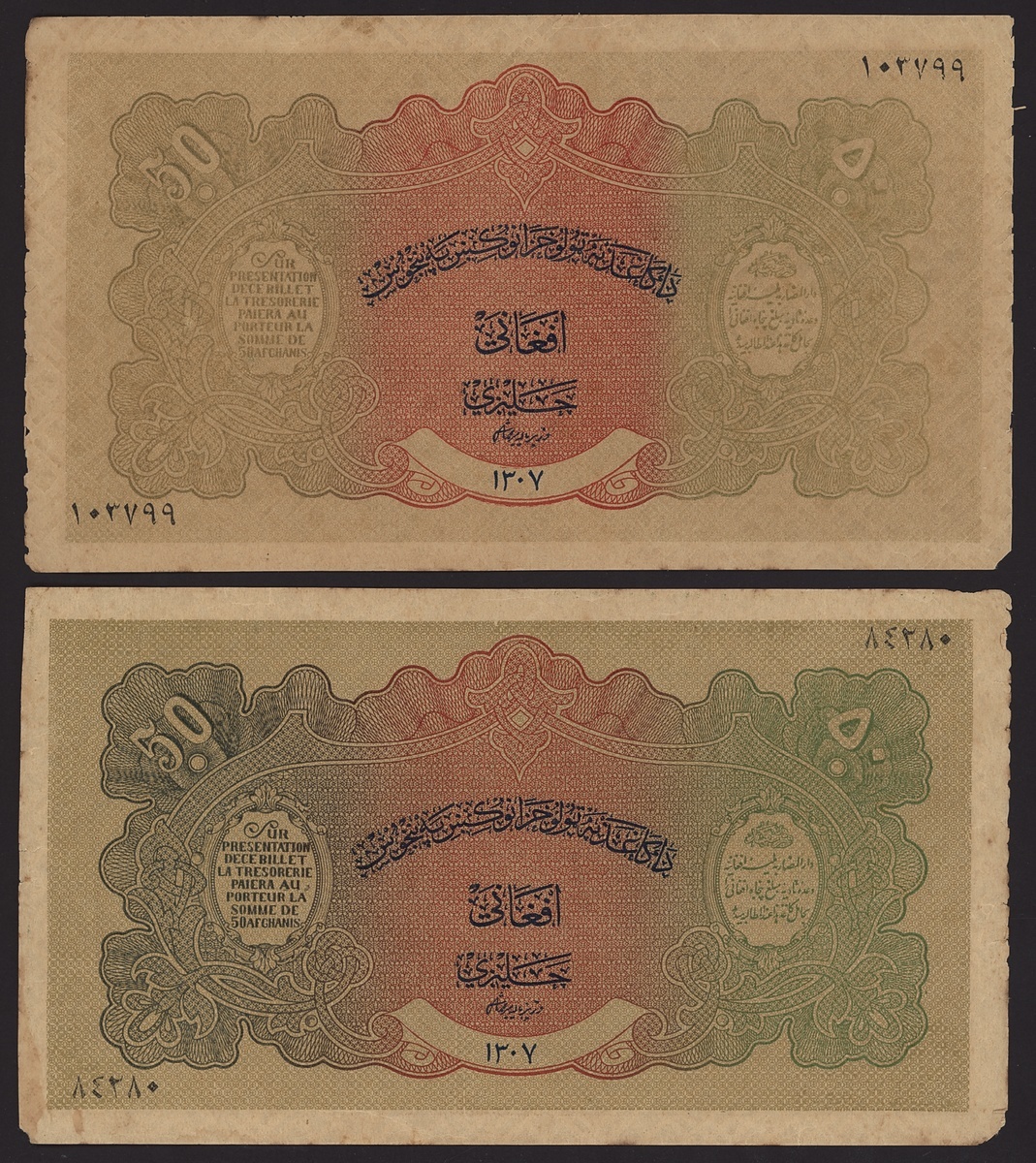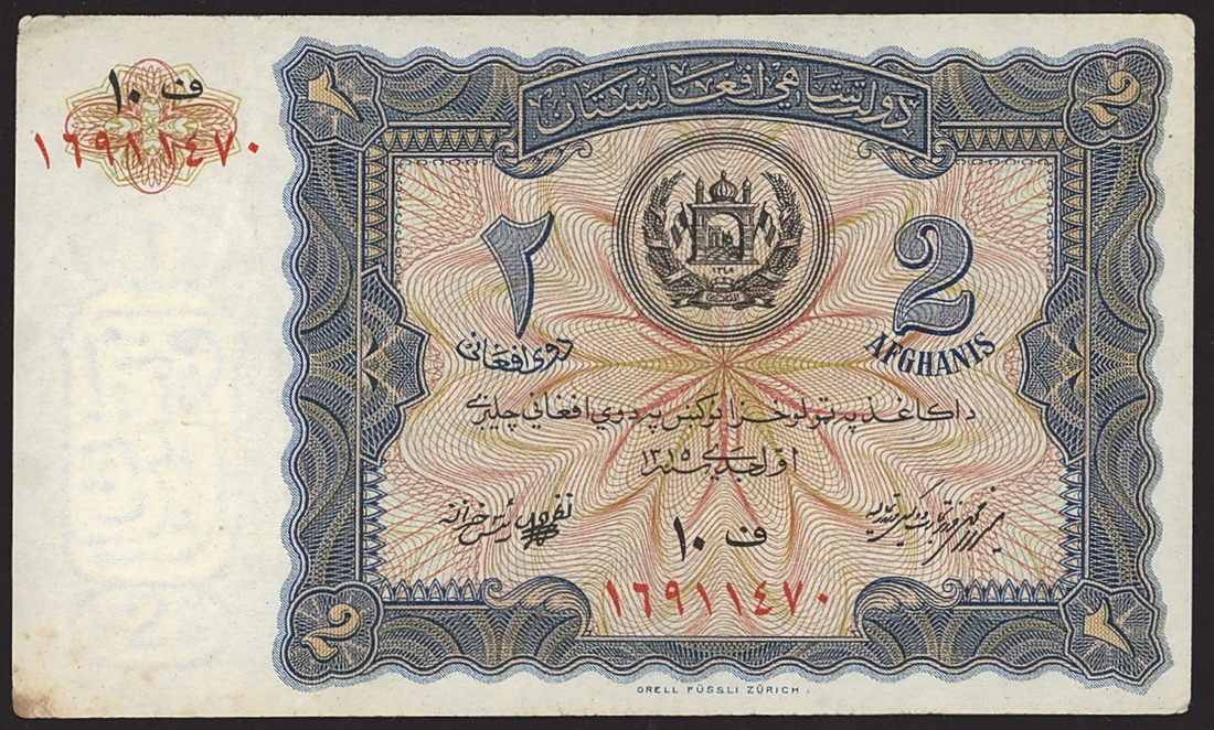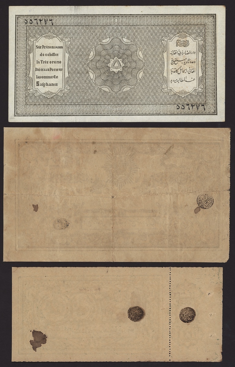 (x) Afghan Treasury, a group of the 1919-29 issues, including 1 rupee (2), 5 rupees, 1919-20 issues, 5 afghanis, 10 afghanis (2), 50 afghanis (2), 1926-28 issues, 5, 10 and 50 afghanis 1928, also a Ministry of Finance 2 afghanis,