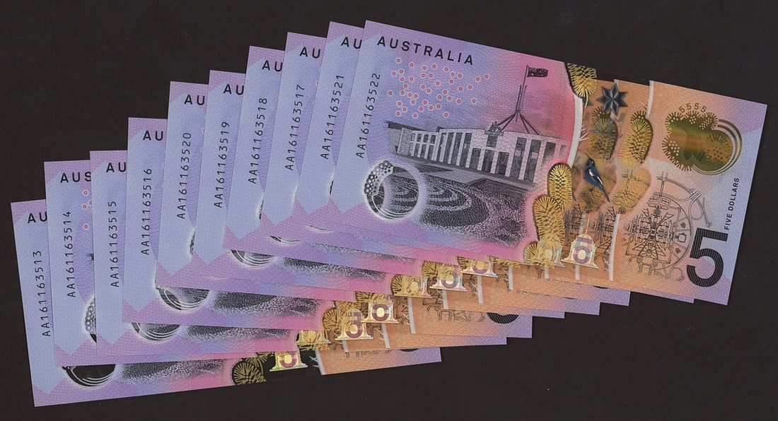 Reserve Bank of Australia, consecutive $5 (10), 2016, prefix AA, (Pick 62, BNB 230a), uncirculated (10 notes)