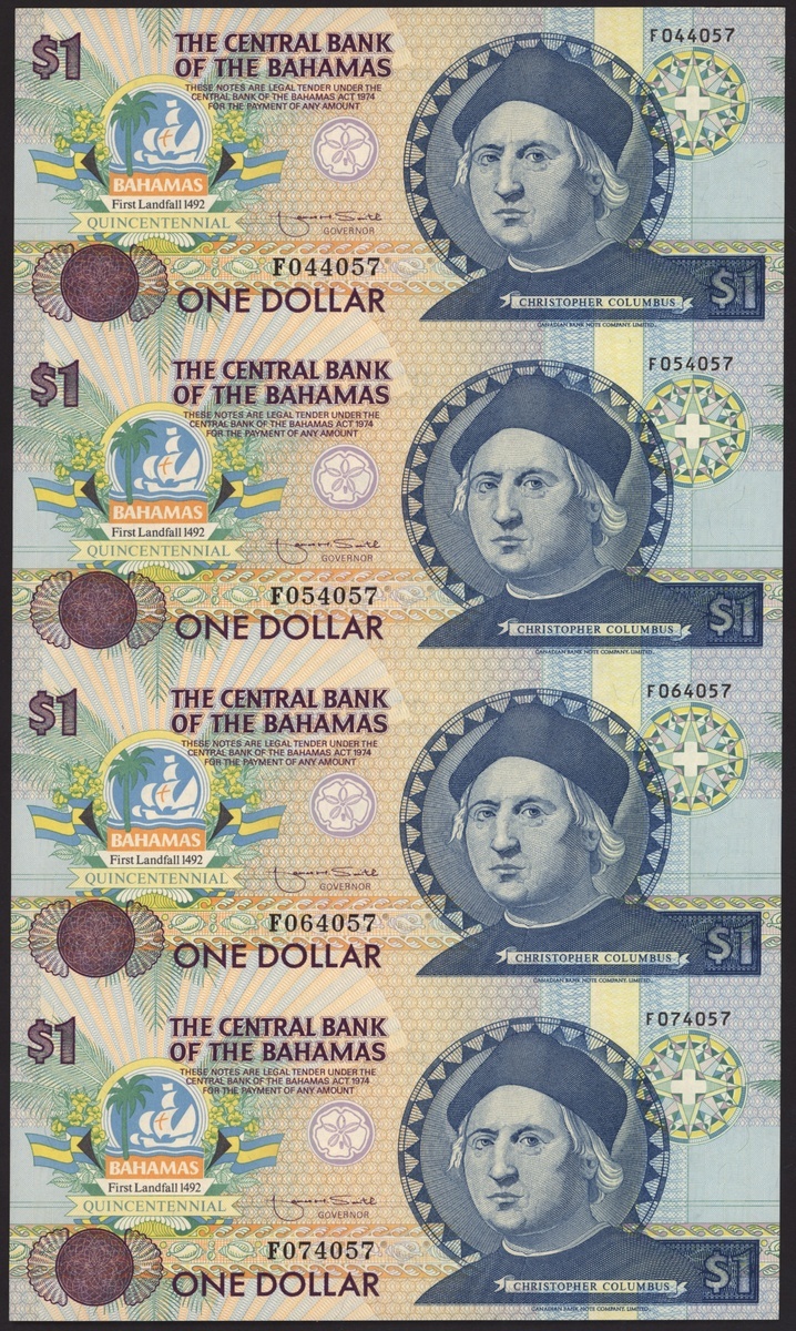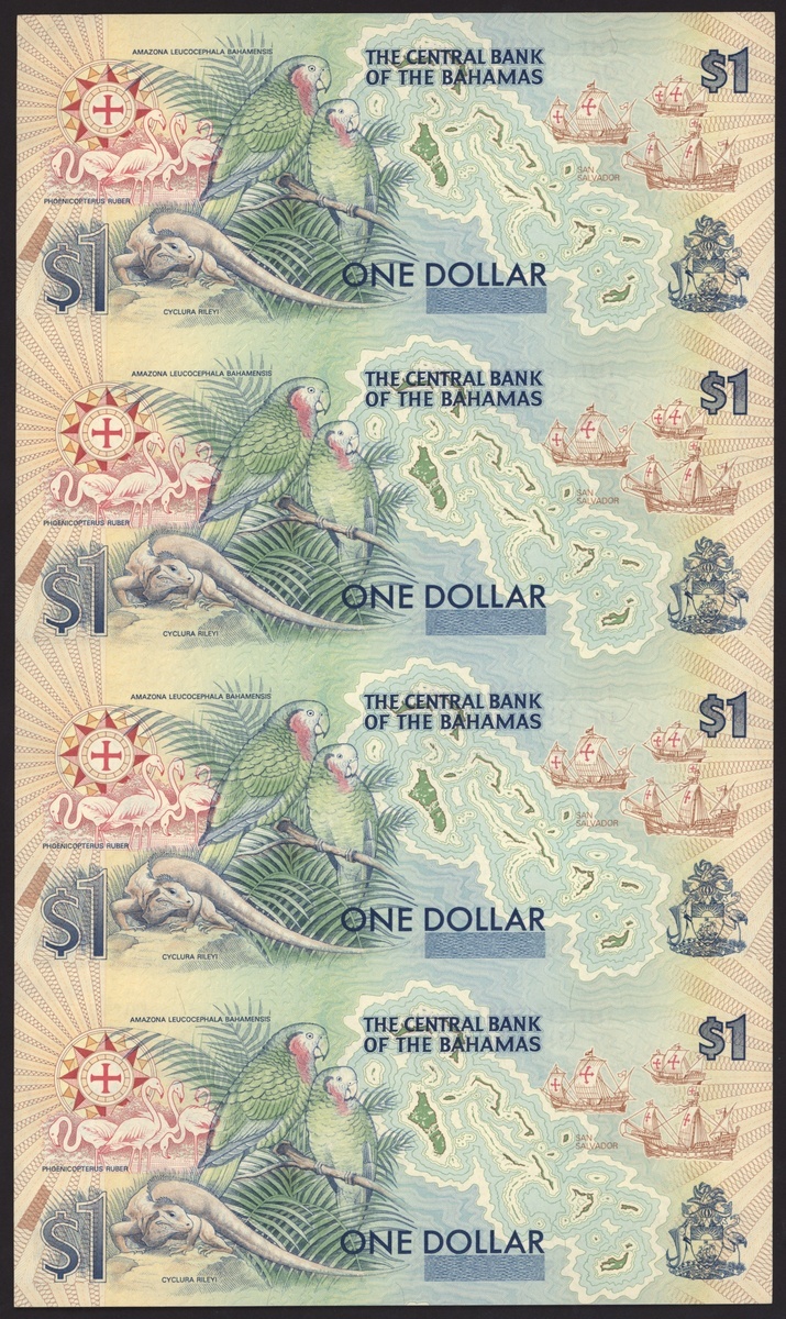 (x) Central Bank of The Bahamas, an uncut sheet of four $1, ND (1992), (Pick 50 for type), uncirculated