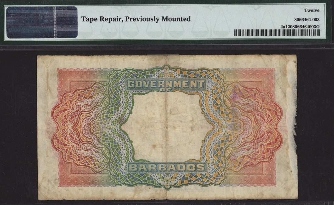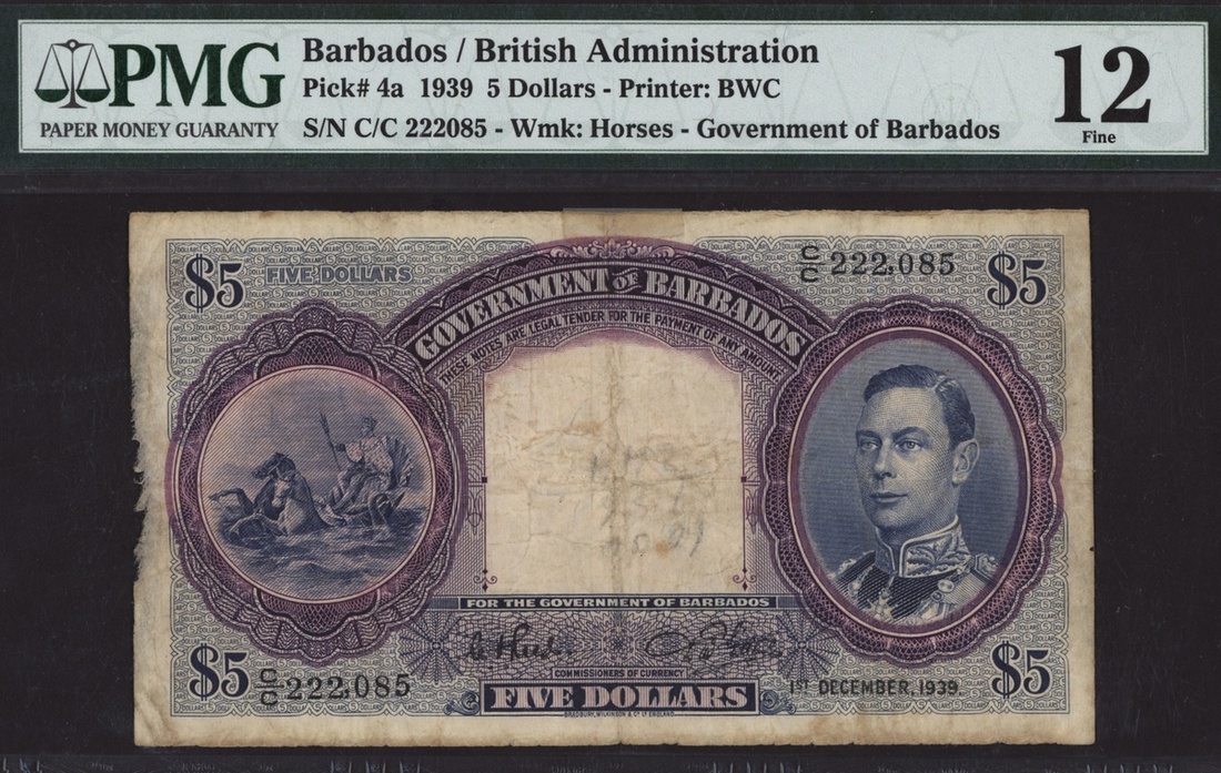 (x) Government of Barbados, $5, 1 December 1939, serial number C/C 222085, King George VI at right