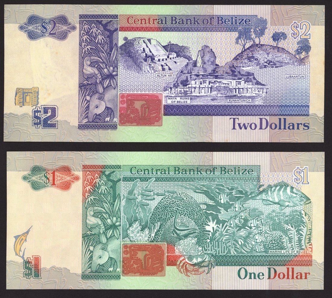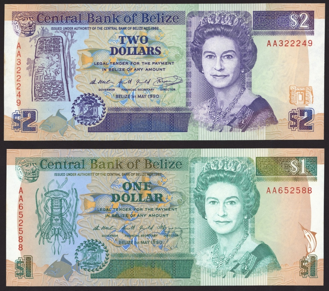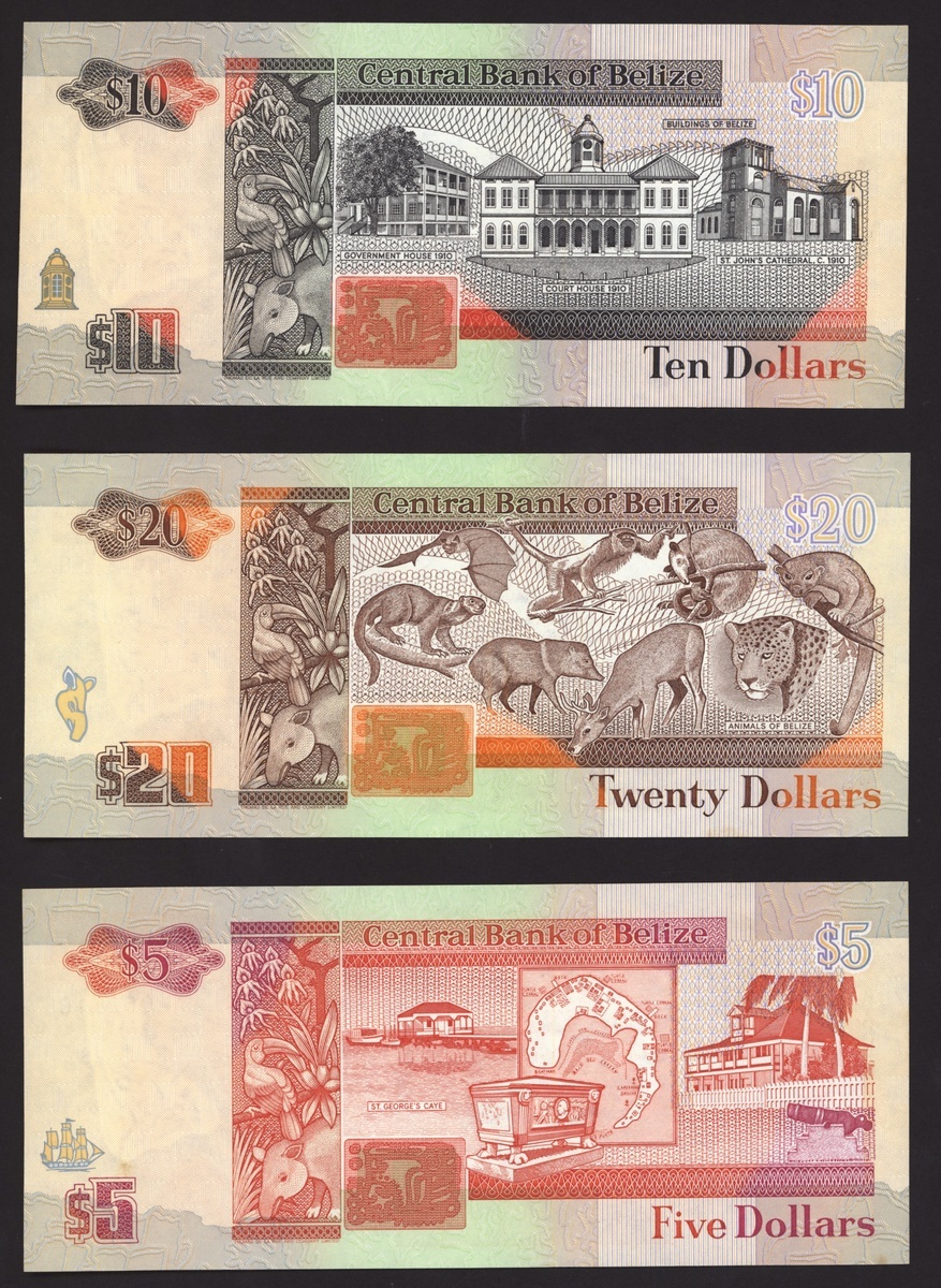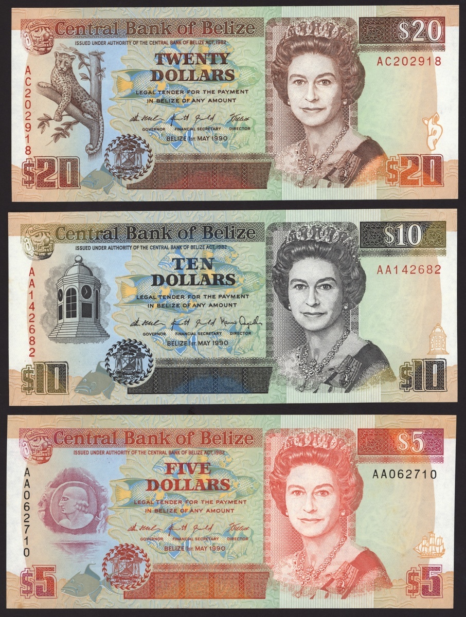 Central Bank of Belize, A group of 1982, 20, 10, 5, 2, 1 dollar notes, (Pick 51-55, B309-3113), uncirculated (5 notes).