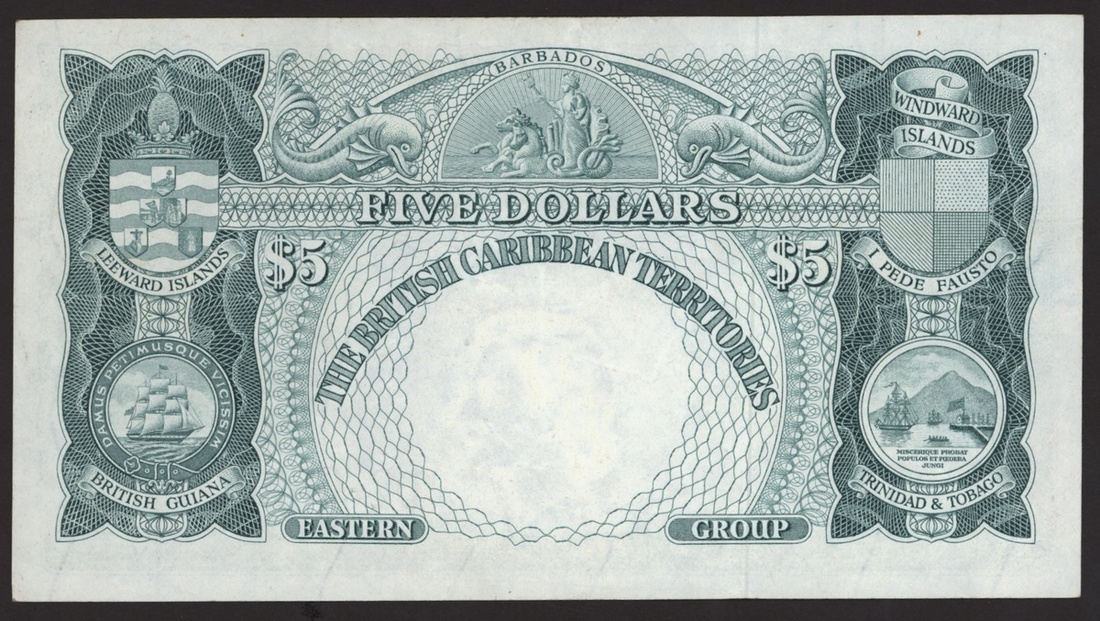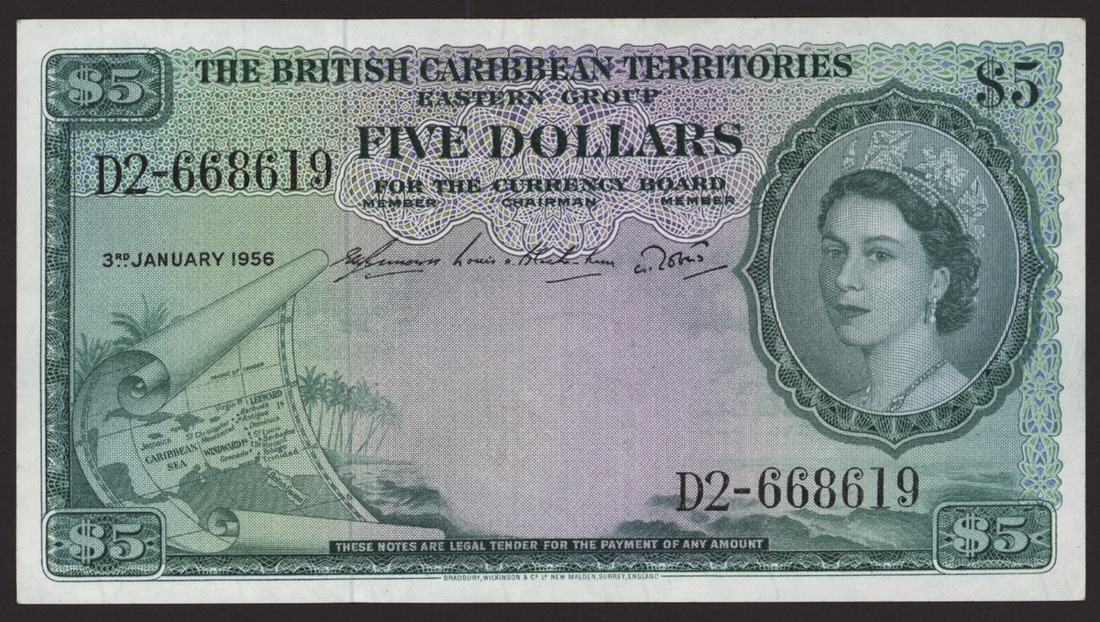 The British Caribbean Territories, 5 dollars, 1956, serial number D2-668619, (Pick 9c, B109c), very fine.