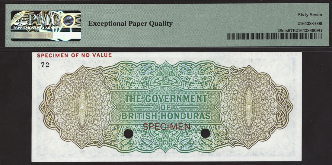 The Government of British Honduras, British Honduras, Colour Trial Specimen 1 dollar, ND (1953-73), (Pick 28cts), in PMG holder EPQ 67 Superb Gem Uncirculated.
