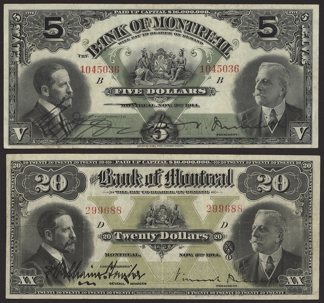 Bank of Montreal, Canada, $5, $20, 3 November 1914, $5 with hand signature,