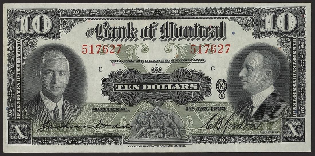 Bank of Montreal, Canada, $10, 2 January 1935, serial number 517627, (Pick S559b, Charlton 505-60-04), good very fine