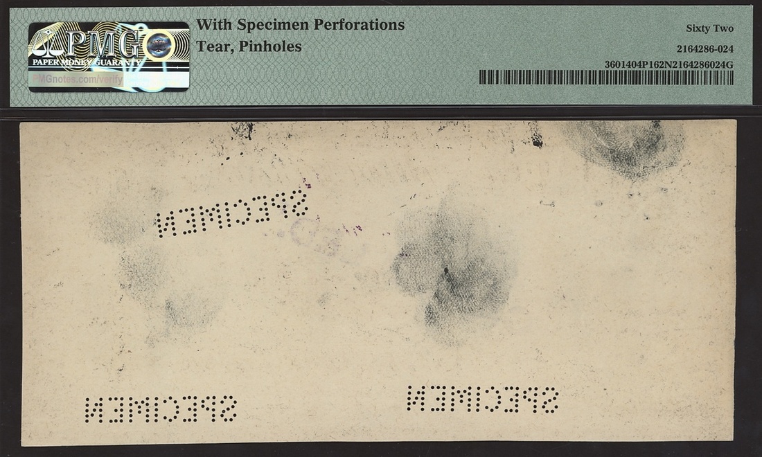 (Charlton 360-14-04p1, Pick S787p), in PMG holder, with specimen perforations, tear, pinholes, 62 NET Uncirculated. Quite scarce