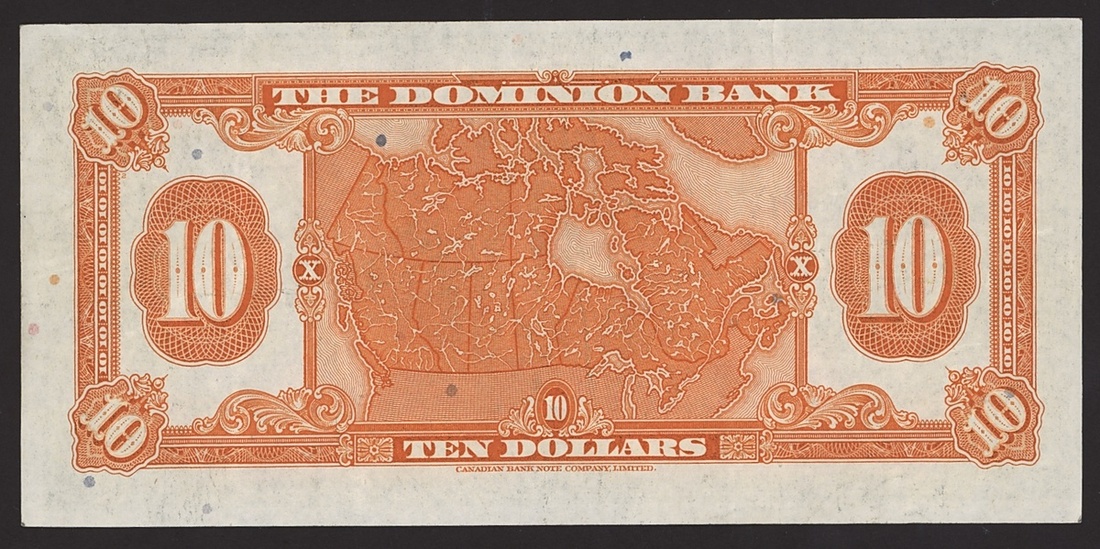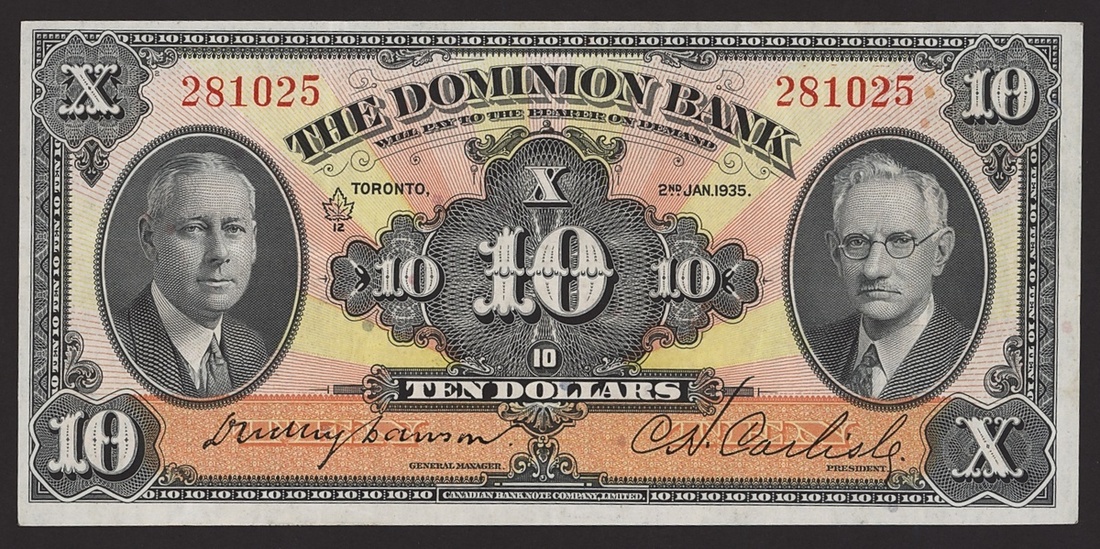 The Dominion Bank, Canada, $10, 2 January 1935, serial number 281025 (Pick S1034, Charlton 220-26-04), horizontal crease, lightly pressed about extremely fine