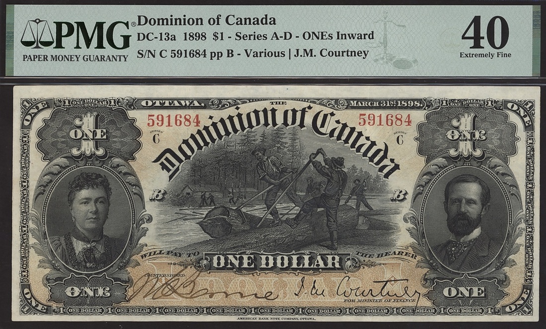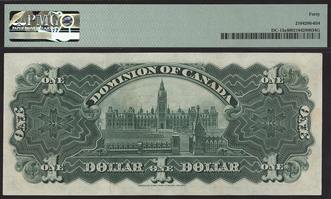 (Charlton DC-13a, Pick 24), in PMG holder 40 Extremely Fine. Scarcer 'inward' type
