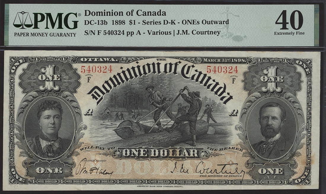 Dominion of Canada, $1, 31 March 1898, serial number 540324, signature Courtney and one handsigned signature,