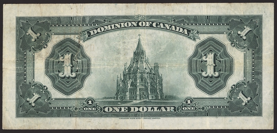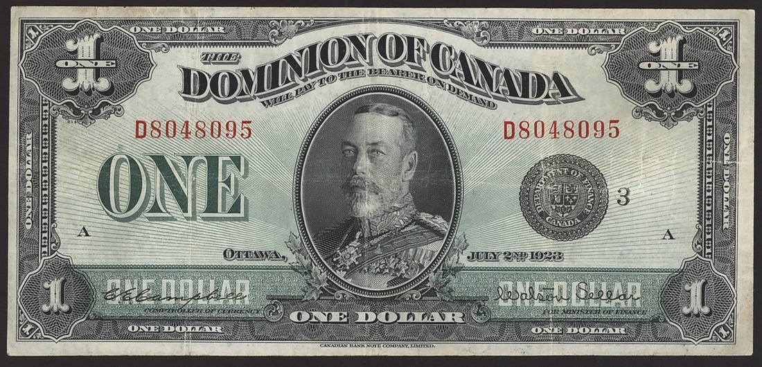 Dominion of Canada, $1, 2 July 1923, serial number D8048095, 'black seal', signature Campbell and Sellar,
