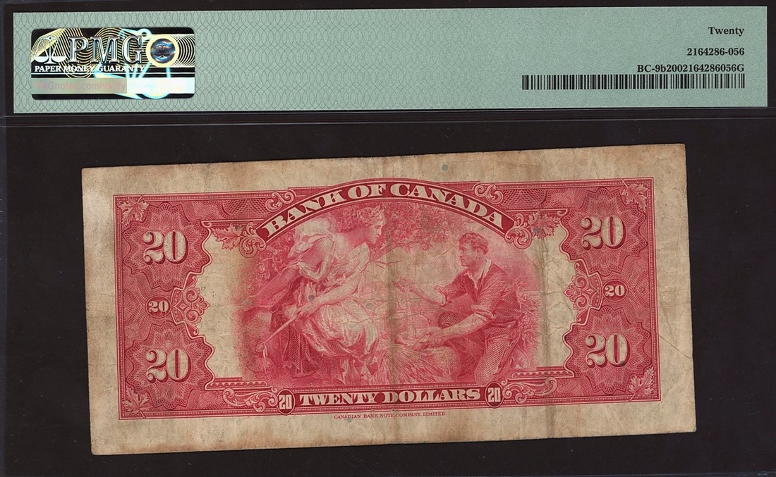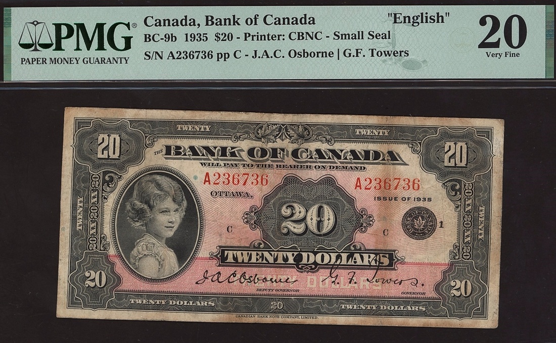 Bank of Canada, $20, 1935, serial number A236736, (Charlton BC-9b, Pick 46b), in PMG holder 20 Very Fine