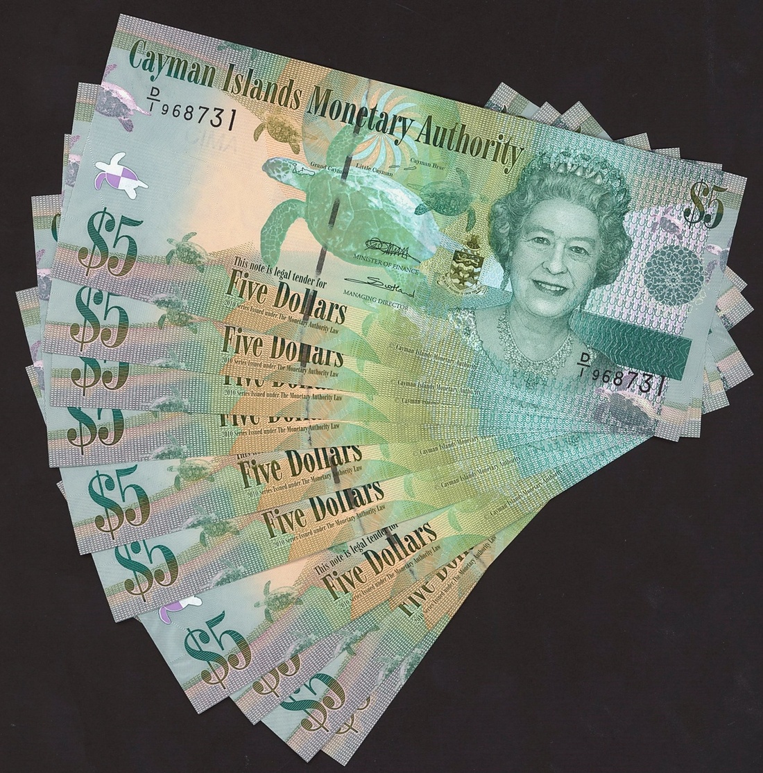 (x) Cayman Islands Monetary Authority, $5 (10), 2010, prefix D/1, (Pick 39a, BNB B219), near consecutive run, uncirculated (10 notes)