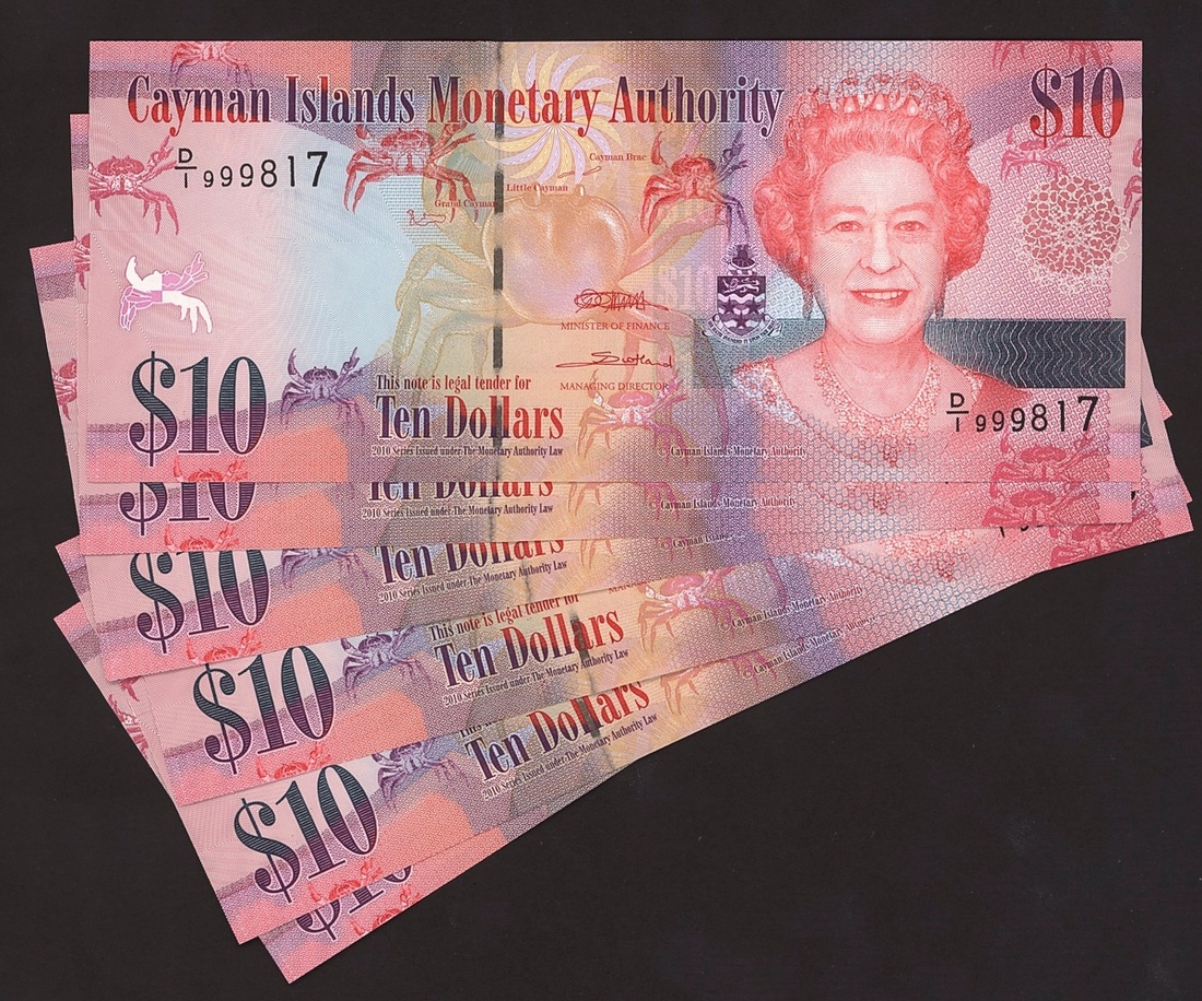 (x) Cayman Islands Monetary Authority, $10 (6), 2010, serial numbers D/1 999817/18/19/20/21/30, (Pick 40a, BNB B219), high serial, uncirculated (6 notes)