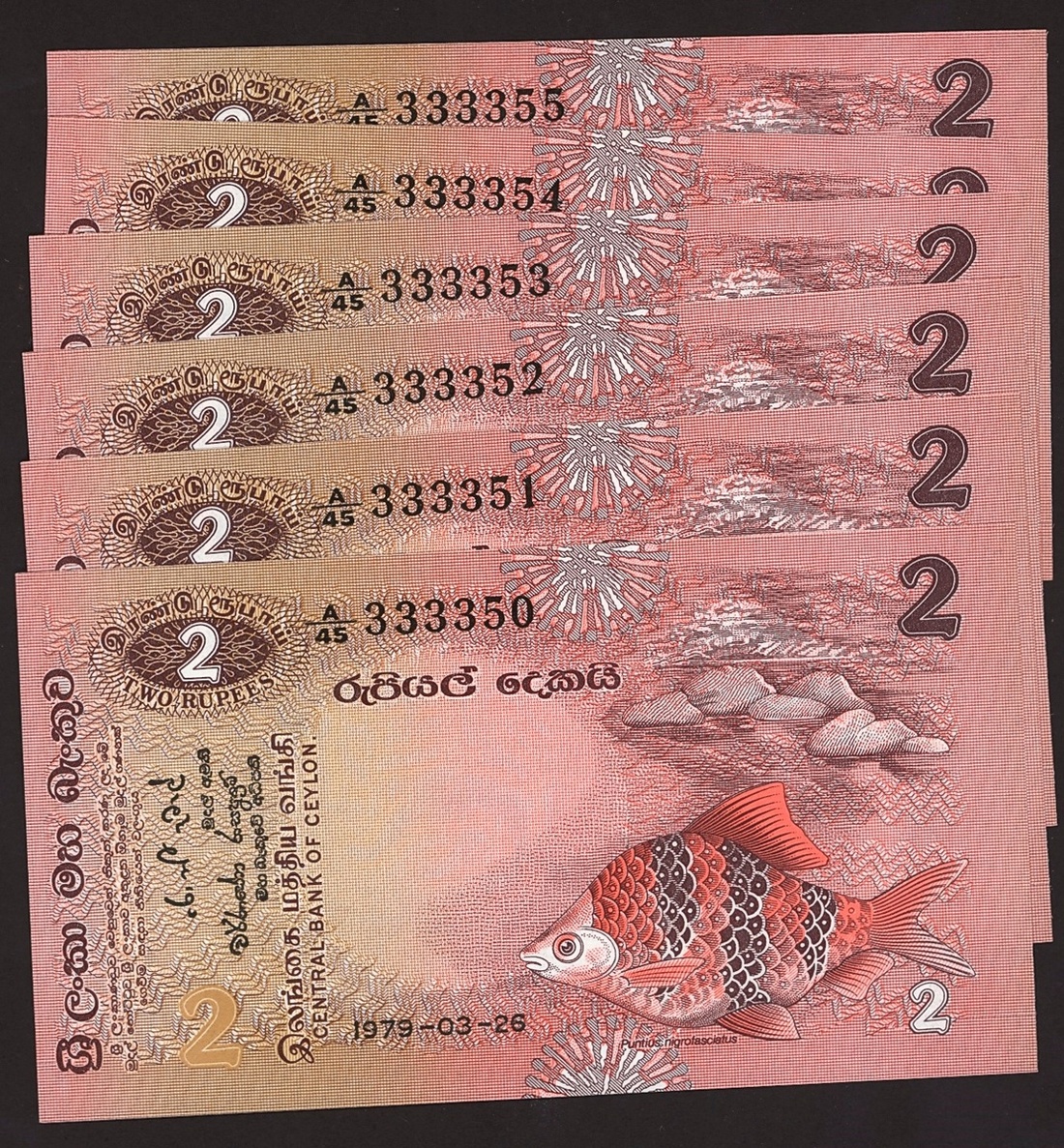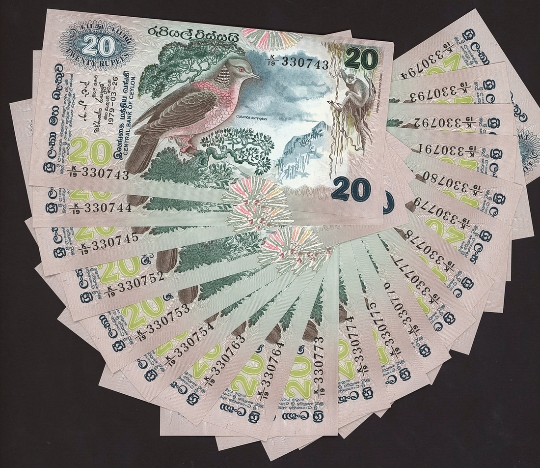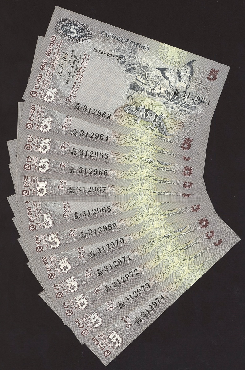 (x) Central Bank of Ceylon, a group of the 1979 issues, including 2 rupees (6), 5 rupees (12), 20 rupees (20),