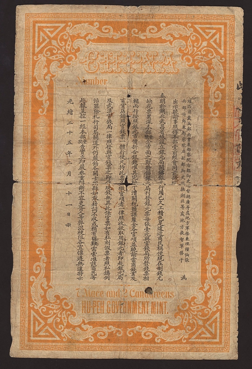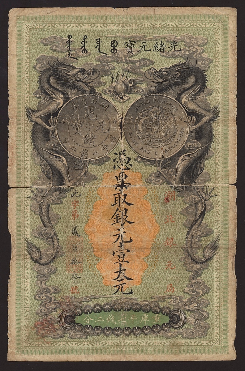 China, Hupeh Government Mint, $1 = 7 Mace 2 Candareens, 1899, (Pick S2135r, S/M#H175-20, BNB 60801a), fair, first date, scarce